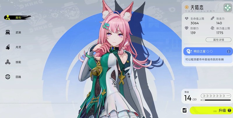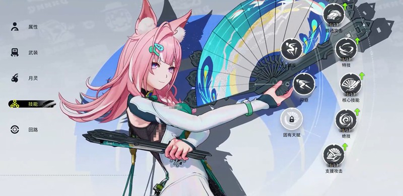 当能量充满时,天狐恋会进入特殊的演出状态。这个状态下她的普攻伤害倍率会显著提升,同时生成两把围绕自身旋转的应援扇,持续对周围敌人造成伤害。如果在演出状态下释放特技,还能消耗所有人气值来大幅提升本次特技的伤害倍率。这种机制设计让天狐恋能够打出相当可观的爆发伤害。
