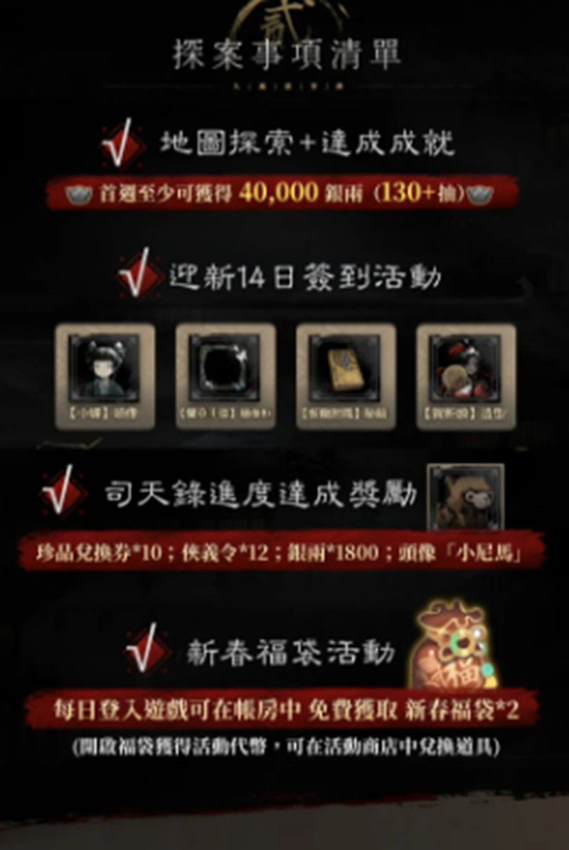 在鬼市酒楼等特殊场景中,也存在通过氪金获取优势的玩法。不过神探诡事录也充分考虑了非付费玩家的体验。在最近的测试版本中,游戏对付费系统进行了优化调整,所有付费内容都享有5折优惠,降低了资源获取难度。同时增加了奖励投放量,减少了每日限购和弹窗礼包的出现频率。