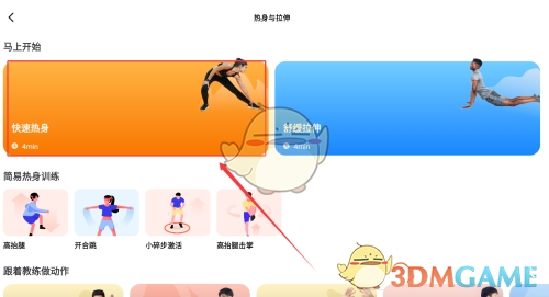 2、选择适合的课程后点击“开始训练”即可跟练,帮助高效预热身体避免运动损伤。