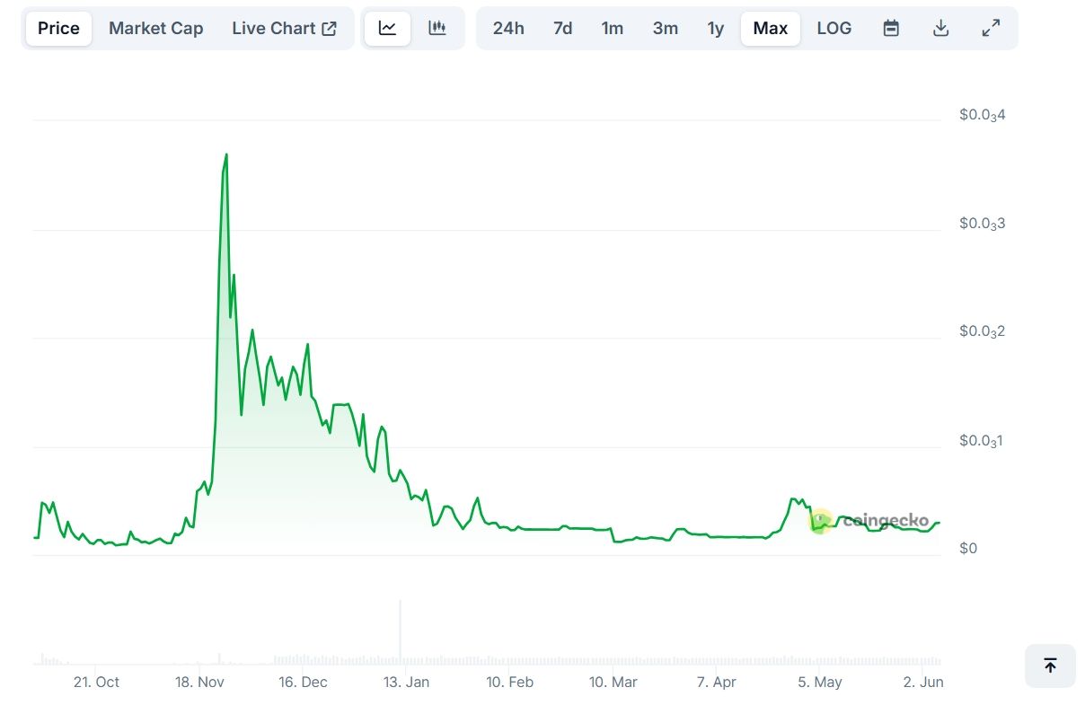 - -- 所有历史最高点(ATH) : 大约$0.001193 美元,达成于2025年5月23日