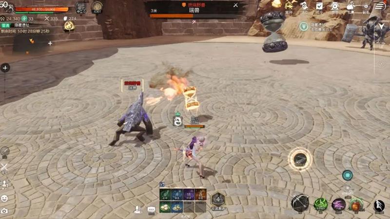 还有合击机制,BOSS血条上方出现蓝色合击条时,全员需进入蓝圈范围使用合击技能,直接打出高额伤害,否则会触发全屏高伤AOE。