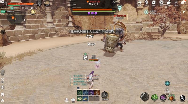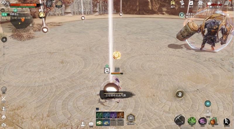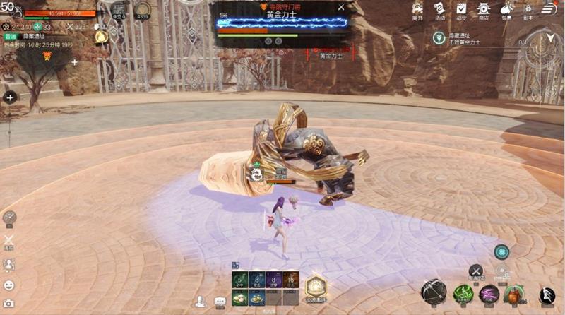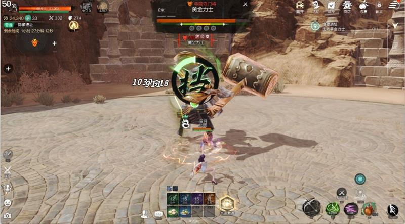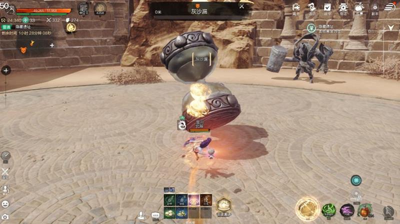 进入隐藏遗址后,灵芝们需要沿着主道尽头冲刺,将沿途的小怪吸引至红色光墙前进行集中清理,这是清道阶段的关键。接着来到机关解谜环节,击败守护瑞兽×2,拾取掉落的金色小沙漏。双沙漏激活需要两名玩家触碰中央灰色大沙漏,也可以单人往返搬运。激活沙漏后会触发黄金力士登场,进入BOSS战。