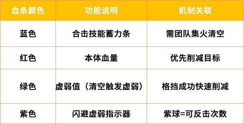 连续触发两次成功格挡可大幅提高虚弱值,虚弱值清空时BOSS将陷入虚弱,此时攻击效率翻倍。