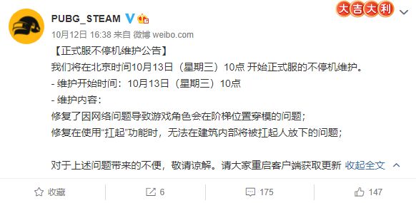 绝地求生10.13更新了什么?PUBG10月13日更新时间及内容一览