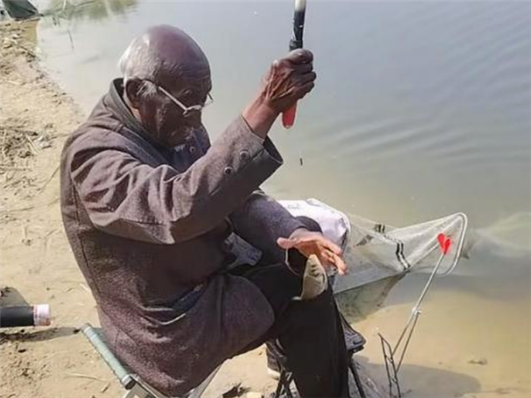 74岁大爷钓鱼钓成“老抽色” 每日垂钓6小时以上