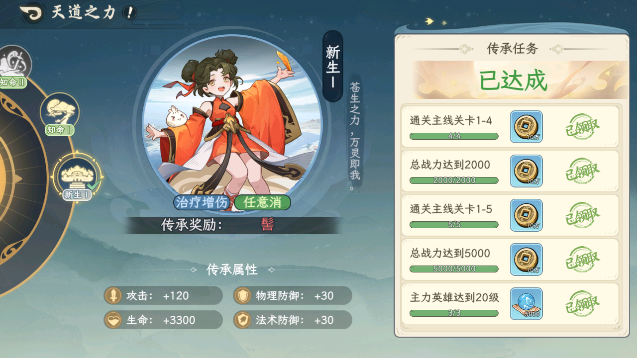 活动说明:完成每阶段传承任务,可获得头衔获得传承属性,提升队伍战力。还可获得传说英雄髻、干戈以及十二品金莲、山河社稷图等传说神器。