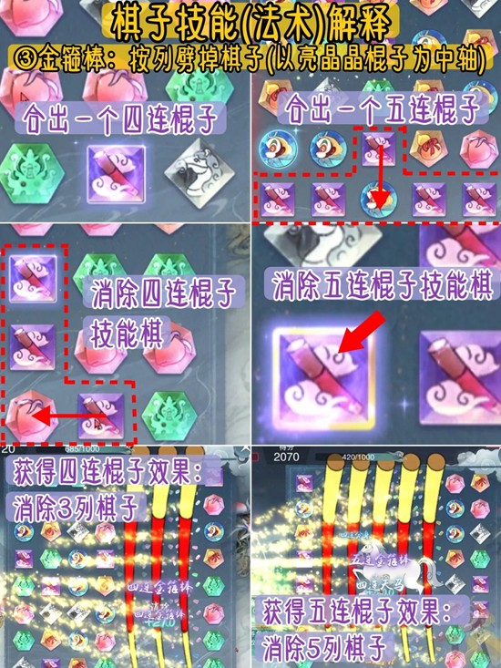 ③金箍棒:按列劈掉棋子(以亮晶晶棍子为中轴)
