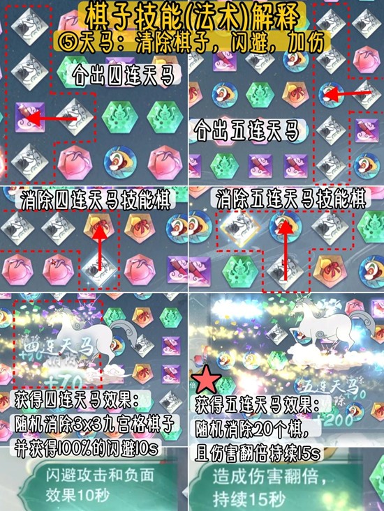 ⑤天马:清除棋子,闪避,加伤