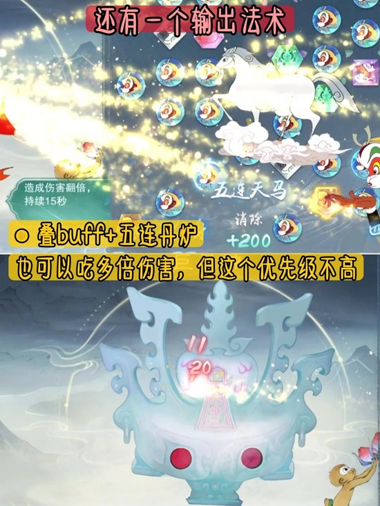 叠五连马buff+五连丹炉:也可以吃多倍伤害,但这个优先级不高