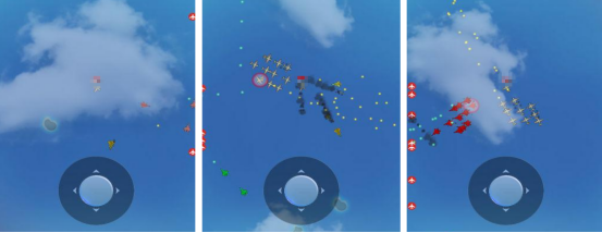 作为特别优秀又厉害的飞行员,随意驰骋在蓝天之中,碧蓝的天空中还有很多编队,等大家随意操控和敌人决一胜负。屏幕的下方有虚拟的控制按键,比如上下左右只需手指滑动屏幕即可操控自己的战机,在蓝天上和敌方展开疯狂较量。精准瞄准并成功发射子弹,将其彻底击败后,将会成为战场上最终的胜者英雄。