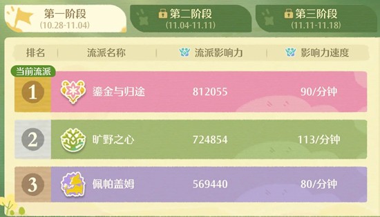 1.影响力速度。影响力速度等于基础速度加上额外获得,其中基础速度为30点每分钟,额外获得的要看流派当前入驻点位数,彻底净化魔物数以及完全入住特定区域数,当前流派影响力速度的额外获得可以进入左上角流派信息,在左下角的产生速度后面点击详情即可查看。