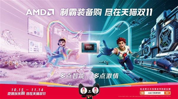 #天猫双11#【AMD】已就位 !多点智能多点激情,和@天猫 一起制霸装备购!双十一期间来AMD官方直播间芯机研究所下单锐龙笔记本电脑,享受品牌折扣优惠基础上,评论加赠一百元猫超卡!#天猫双11多点看头#