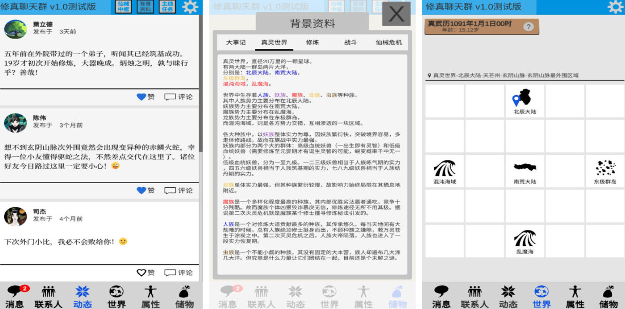 修真聊天群是一款融合修真题材与即时通讯玩法的免费手游,玩家可在虚拟聊天群中与其他修真者交流心得、组队历练。动态消息推送机制营造出真实的社交氛围,属性成长系统与日常任务紧密结合,让你在谈笑间提升修为。无论是喜欢单人修炼还是群聊互动的玩家都能找到乐趣。