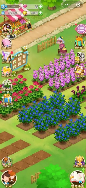 本作主打花卉培育与城镇美化,目标是通过精心打理花园吸引更多游客前来参观,从而提升小镇的繁荣度。玩家需从选种开始,经历播种、浇水、施肥等一系列环节,科学管理资源以确保花卉健康生长。游戏设有定期举办的花卉竞赛,玩家可提交自己培育的优质花朵参与评比,展示园艺成果,赢取荣誉奖励。