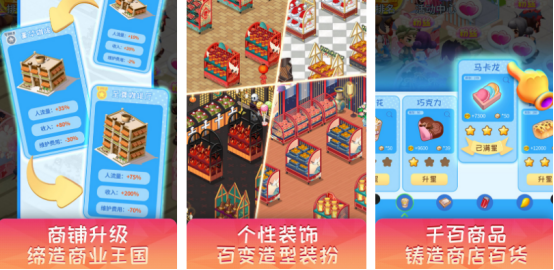 从画面上来看就特别可爱,因此很多小孩子们在每次看到之后就会忍不住体验,其中有男性角色以及女性角色可随意挑选,在选择了不同的角色之后就可亲自体验真实的生活方式,比如经营商场或者是各种经营店铺等等,其次还涵盖众多npc的角色等,大家来互动。经过触动的方式就能触发各种任务体系,还能成为真正的商场管理员。
