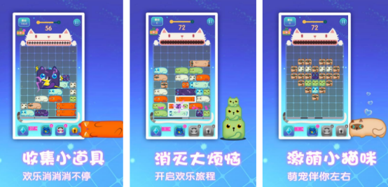 消除方块为主要核心,其中的方块类型完全不同,并不是特别枯燥的正方形方块或者是长方形方块,而是由各种可爱的动物组合而成,只不过这些方块的长度都完全不同,大家可通过左右滑动的方式将这些方块填满整行,以此快速消除,每个关卡中的分数要求以及规定都完全不同。