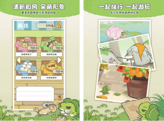 主角是一只萌态十足的小青蛙,游戏延续日式治愈风格,属于养成与轻度经营结合的类型。你可以为它准备行囊,静待它独自出发旅行。在外期间,它会寄回明信片并带回各地特产,记录所见所闻。玩家不仅能欣赏具有和风特色的角色设计,还能通过收集道具了解不同地域的文化风情。