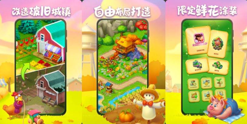 结合农场经营与城镇建设两大玩法,《梦想城镇》让玩家从荒废土地起步,通过种植作物、饲养动物积累资源,并逐步建设配套设施吸引居民入住。建筑材料可通过消除类小游戏获取,动物园门票销售也能带来额外收入,玩法多元且富有节奏感。