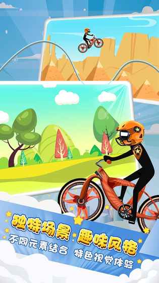《火柴人单车》结合了物理模拟与特技骑行元素,玩家需操控火柴人骑手驾驶自行车穿越复杂赛道。面对大量障碍物和高风险地形,必须依靠精准操作完成翻转、跳跃等高难度动作。每一关都有独特主题设计,画风轻松幽默,关卡递进式增加难度,鼓励玩家不断突破自我,冲击更高分数记录。