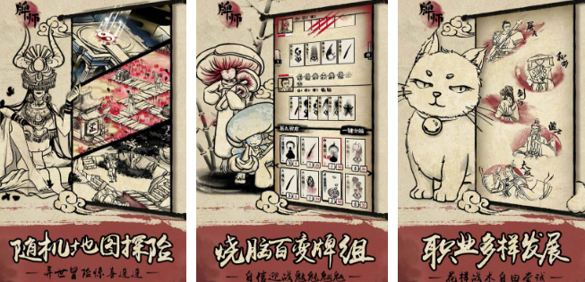 《牌师》采用国风暗黑美术风格,营造出神秘莫测的秘境氛围。玩家扮演执掌卡牌之力的牌师,在随机生成的房间中探索前行。房间类型多样,包括战斗、休整、抽卡与道具获取等。初始卡组较为基础,需在冒险过程中不断扩充与强化卡牌库。