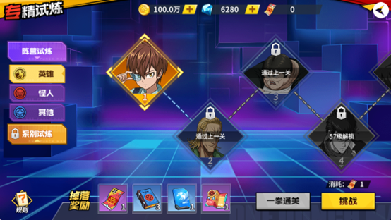 专精试炼是42级开启的挑战玩法,玩法分为阵营试炼与系别试炼,分别掉落对应养成所需要的材料。