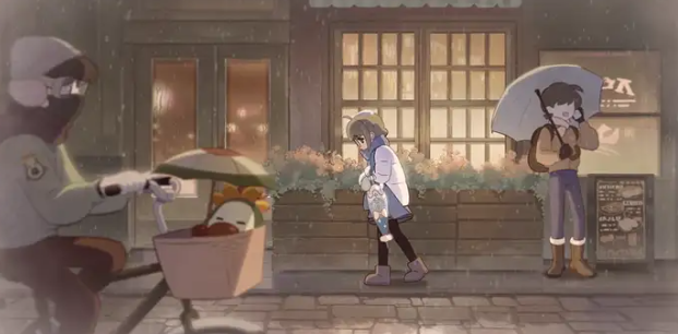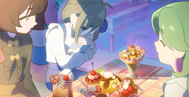 不只是雨天,在寒冷的小雪天气里,小雅即使自己冻得发抖,依然坚持为安布蕊娜撑伞保暖。这些点滴都被安布蕊娜默默记在心里,也让她对小雅产生了深深的信赖与敬重。直到某次暴雨来袭,原本总是依赖他人的安布蕊娜主动化作一柄长柄阳伞,反过来为小雅遮雨。曾经那么惧怕潮湿的她,如今却愿意为了对方直面恐惧,这一转变令人心头一热。从PV中的对话能明显感受到,小雅本是一个性格内敛的人,但在彼此陪伴的过程中逐渐变得开朗自信,这正是情感双向滋养的力量。
