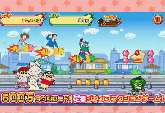 该游戏改编自经典动画《蜡笔小新》,由日本原厂开发,保留了原汁原味的日文界面,虽未进行中文本地化,但仍不影响整体游玩体验。玩家可以操控小新及其家人、朋友,在城市中穿梭执行任务,面对各种障碍和敌人时需灵活运用走位与操作技巧,完成关卡挑战,重拾童年的欢乐记忆。