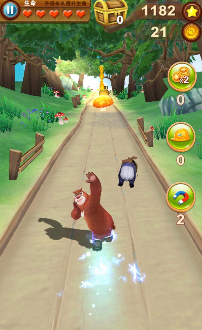 这是一款以森林冒险为主题的竖版跑酷类手机游戏,完美还原了动画中的多个标志性场景,如原始森林、冰雪山地等。玩家可操控光头强、熊大或熊二在高速奔跑中完成跳跃、滑铲等操作,灵活躲避障碍物并收集金币与萌宠伙伴。被召唤出的宠物还能提供属性增益效果,提升通关效率。区别于传统跑酷模式,本作加入了实时多人竞技系统,支持在线匹配对战,并设有积分排行榜,增强竞技性与重复可玩度。