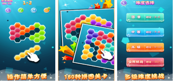 灵感源自2048与俄罗斯方块的经典机制,创新性地引入六边形布局,支持六个方向自由消除与拓展。全新规则带来差异化玩法体验,内容丰富且极具吸引力,容易让人沉浸其中。每次清除动作伴随华丽视觉特效,缤纷动感的画面表现增强游戏代入感。玩家可通过连续消除积累高分,感受别具一格的解压乐趣。