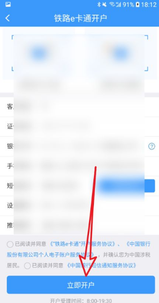 全部填写完,查看并确认是否同意协议,点击【立即开户】,等待结果