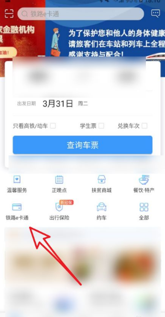 进到主页,找到【铁路e卡通】选项