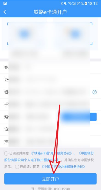 全部填写完,查看并确认是否同意协议,点击【立即开户】,等待结果