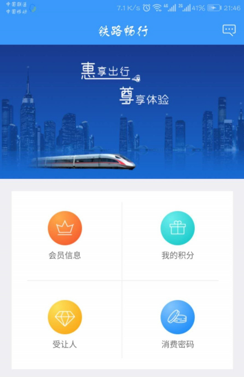 要想使用积分兑换车票,必须提前激活会员,激活方法可在百度经验查找,在此不再介绍。点开12306app,点击铁路畅行选项,打开如下界面。
