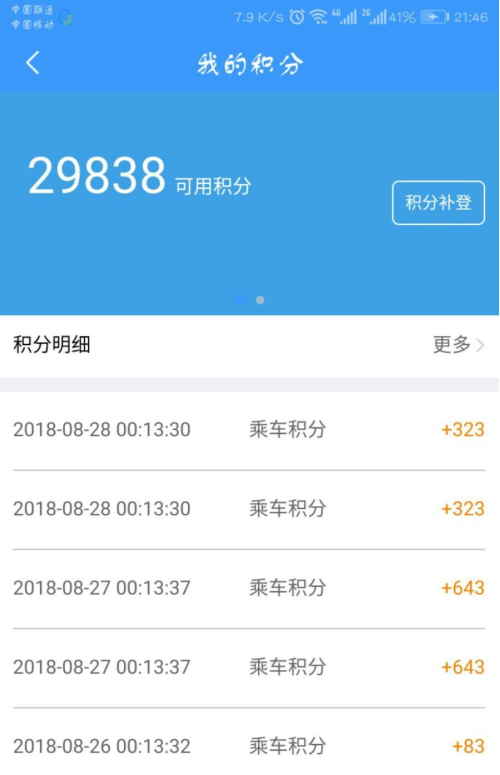 点击我的积分,查询自己账号的剩余积分,10000积分即可兑换一百人民币的车票。