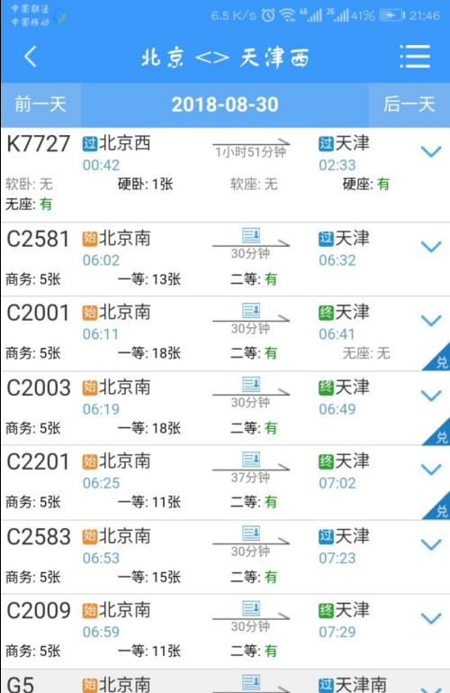 查找右下角有“兑”字的车次,点击进出车次信息界面。