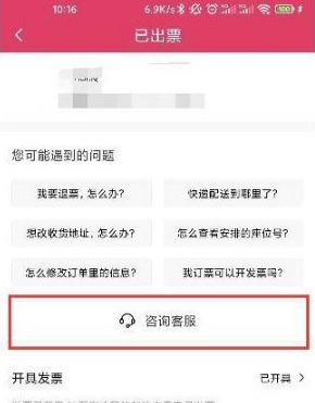 4、在已出票页面下滑找到【咨询客服】联系客服。