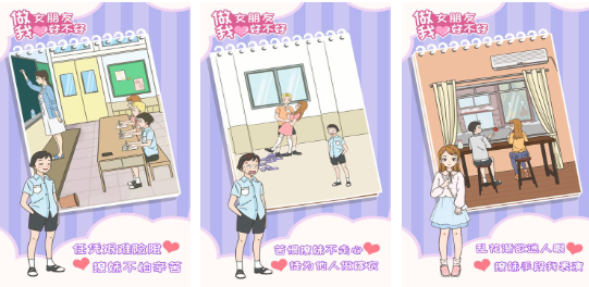整体画风简洁清新,营造出轻松愉悦的游戏环境。视觉设计去繁就简,让玩家更容易投入其中。服装系统不仅美观,还与剧情发展紧密关联,更换穿搭可提升角色魅力值,进而影响故事走向。关卡设计巧妙结合情节推进,每完成一关即可解锁新角色,增强探索乐趣。