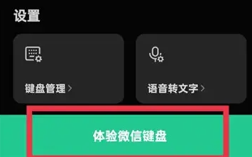 1、首先打开微信键盘软件,进入到此页面之后点击页面*下方的体验微信键盘;