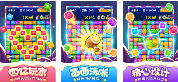 这是款内容塑造新奇的免费消除星星小游戏,有着超高下载量跟极为清晰精彩的消除画面,每个关卡都经过专门的设计玩起来更是解压感十足,全新版的消除星星效果更为炸裂且道具众多,巧妙配合这些道具进行消除的感觉极为过瘾,更多的消除类玩法纷至沓来展现出消灭星星系列游戏的魅力,喜欢简单小型消除星星手游的朋友别错过哟。