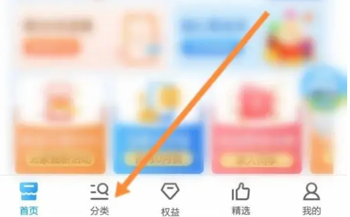 打开手机的中国移动,点击分类。