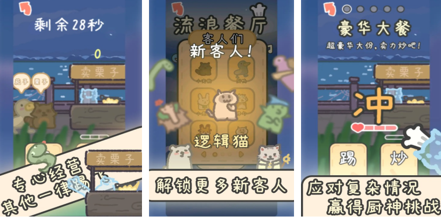 这是一款结合采集、烹饪与剧情推进的特色作品。玩家需要亲自外出获取食材,再将其加工成美味佳肴进行售卖,形成完整的经营闭环。游戏内置二次元风格的故事线,推动玩家不断解锁新章节。除了经营策略外,还需招募伙伴——比如可爱的小狗助手——共同打理流动餐厅。整体玩法富有沉浸感,策略性与互动性兼备。