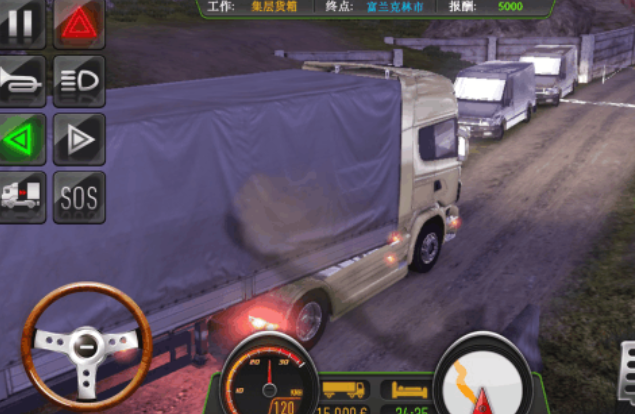 本作聚焦于欧洲大陆的长途货运体验,界面设计高度拟真,屏幕内集成档位切换、手刹、灯光、空调等多项控制按钮,力求还原真实卡车驾驶舱操作逻辑。任务系统结构完整,结合动态天气与交通流变化,营造出极具挑战性的行车环境,适合追求硬核模拟体验的玩家。
