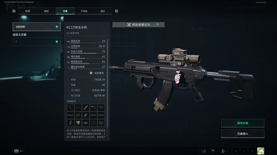 战局适应性:无论是单人游击还是团队协同,这套改装的 KC17 都能凭借高射速和稳定的操控性,成为 “火力输出节点”。