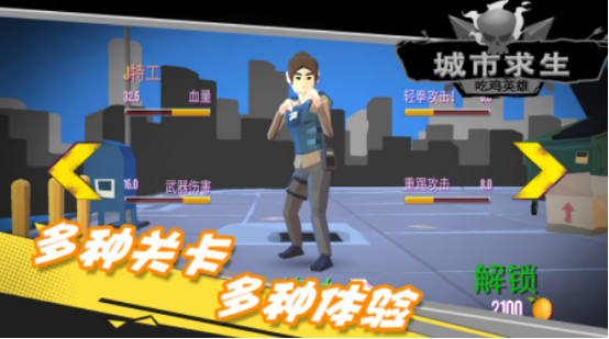 采用横版卷轴形式呈现,背景设定在动荡不安的城市街头,关卡结构丰富多样,每一关都带来全新的挑战内容。玩家作为主角“吃鸡英雄”,可通过闪避、跳跃等方式与对手周旋。同时提供多种时尚外观供角色更换,个性化装扮系统增强代入感与视觉表现力。