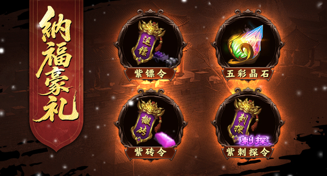 寒雪添趣,福利暖心!每日登录即可获取五彩晶石,紫镖令,紫砖令,紫刺探令等珍稀好礼!