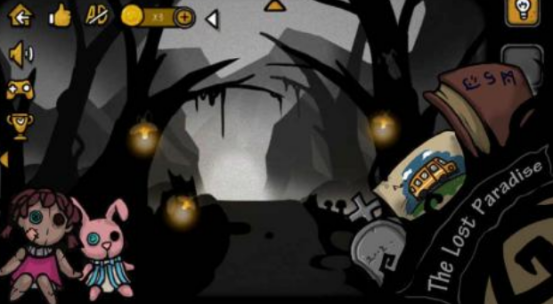 采用暗黑风格视觉呈现,游戏开局即置身于幽深森林之中,夜幕笼罩下方向难辨。玩家目标是寻找归家之路,在探索途中可能遭遇凶险怪物,也可能结识同行伙伴。沿途布满隐藏谜题,必须通过搜集线索、逻辑推理逐步解开谜团,才能成功逃离迷境。