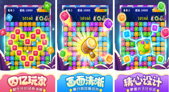 这是一款画风清新的消除类益智游戏,拥有细腻的视觉特效和舒缓的音效体验。每次成功消除星星时都会触发绚丽动画,带来强烈的成就感。在传统消除玩法的基础上,融合了多种创新元素,如俄罗斯方块机制和连线匹配模式,让经典玩法焕发新生。每一关都设有不同障碍,需灵活使用道具才能顺利通过,适合各年龄层用户在闲暇时刻放松大脑。