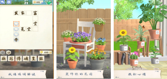 将传统文化与休闲玩法巧妙结合,打造沉浸式成语学习体验。玩家扮演一位从都市归乡的女孩,在奶奶留下的花园里开启田园生活。为了让植物健康生长,必须完成成语接龙或填空任务来获取水滴和肥料。游戏寓教于乐,涵盖广泛词汇内容,有助于拓展语言知识,适合全年龄段人群在放松之余积累文化素养。