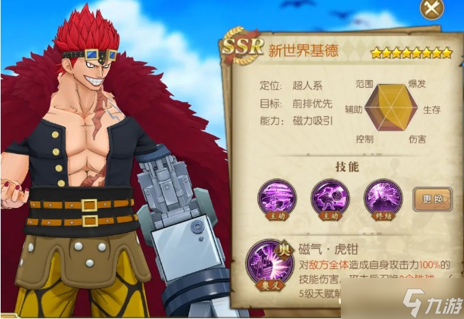 基德这里的技能分别是:金属旋风、磁气发射、磁气弦。