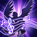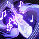 释放琴音,每0.5秒为范围内的所有友方英雄与召唤物回复缪斯防御100%的生命,并增加20/40/60/80点物理和魔法抵抗,持续5秒